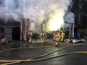 Clark County Fire & Rescue crews were dispatched at 7:09 p.m. to 6742 N.E. 239th St., west of Battle Ground, for the report of an outbuilding on fire. Multiple callers reported hearing explosions and seeing fire from a distance, according to a new release.