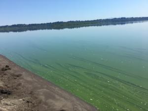 Danger signs are posted at the swim beach and other public access points to the lake. Public Health is advising against all recreating on the lake, including swimming, kayaking, paddle boarding, canoeing, water skiing and fishing. Pets should be kept out of the water, as cyanotoxins can be deadly to small animals.